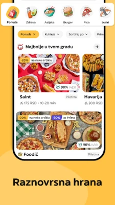 Da li vam je potreban brz obrok nakon dugog dana, ili su vam zatrebale namirnice usred nedelje, a vreme je dragoceno? Glovo je vaše rešenje za trenutne potrebe i bezbrižnu svakodnevicu. Zamislite da vam je ceo grad nadohvat ruke, dostupan putem jedne aplikacije. Glovo donosi sve što vam treba, direktno na vaša vrata, štedeći vam dragoceno vreme i trud. Uživajte u udobnosti doma dok vam mi preuzimamo brigu oko nabavke.