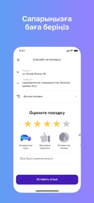 Tez Taxi vam pruža potpunu kontrolu nad vašim putovanjem. Izaberite tarifu koja najbolje odgovara vašim potrebama, unapred saznajte procenjenu cenu vožnje, i odlučite kako želite da platite – bezgotovinski karticom ili gotovinom. Dok čekate, pratite kretanje vašeg vozila u realnom vremenu na mapi, znajući tačno kada će stići. Tim kompanije Jana Qazaqstan neprestano radi na unapređenju aplikacije i implementaciji novih funkcionalnosti kako bi vam obezbedio uslugu najvišeg kvaliteta.